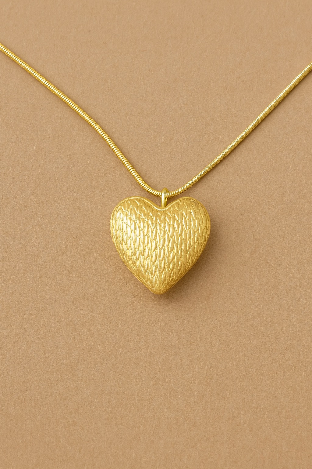The Amour necklace features a stunning heart pendant with a delicate engraved texture that beautifully reflects the light. Crafted with a high-quality base and plated in both rhodium and 24K gold, it offers a sophisticated shine and long-lasting elegance. This piece embodies romantic charm, making it ideal for special occasions or to elevate your everyday look with a graceful golden accent. A classic accessory that speaks straight to the heart.