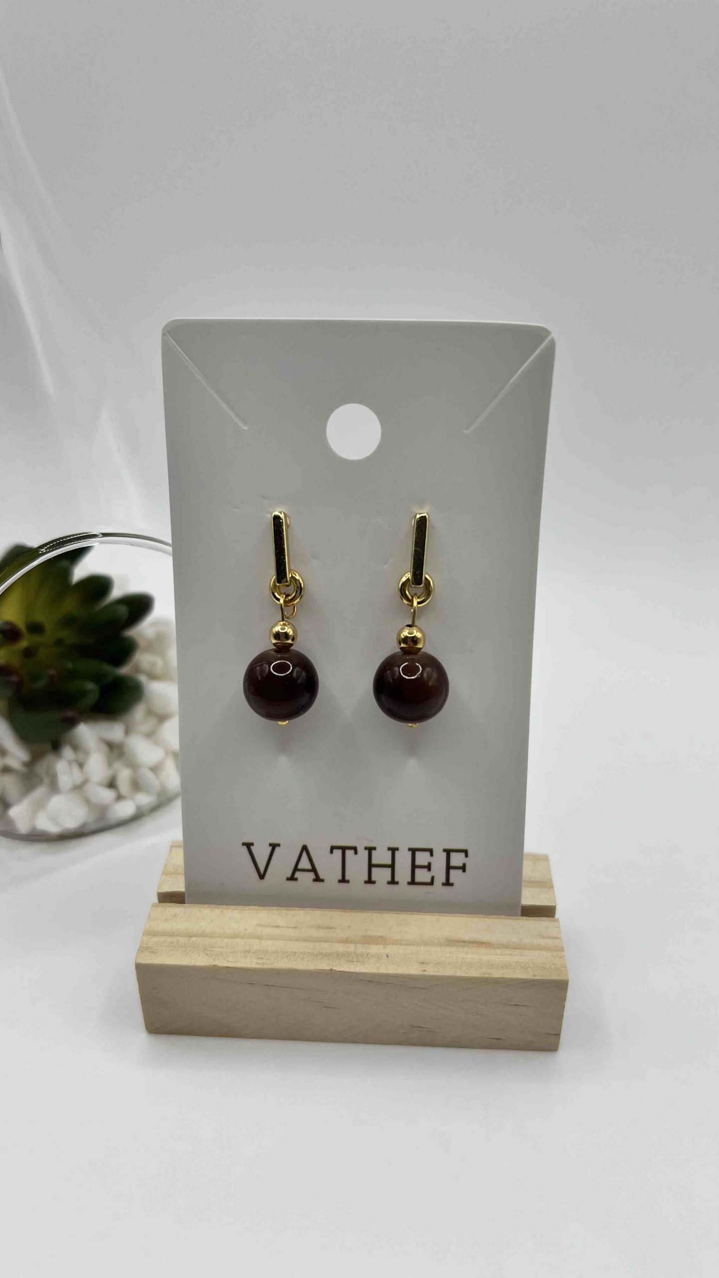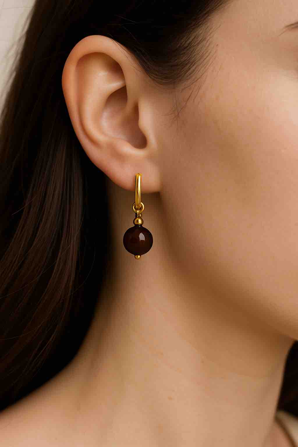 Elegant Brown Agate earrings with 18K gold plating. A minimalist and timeless design that adds a natural touch of elegance to your everyday style.