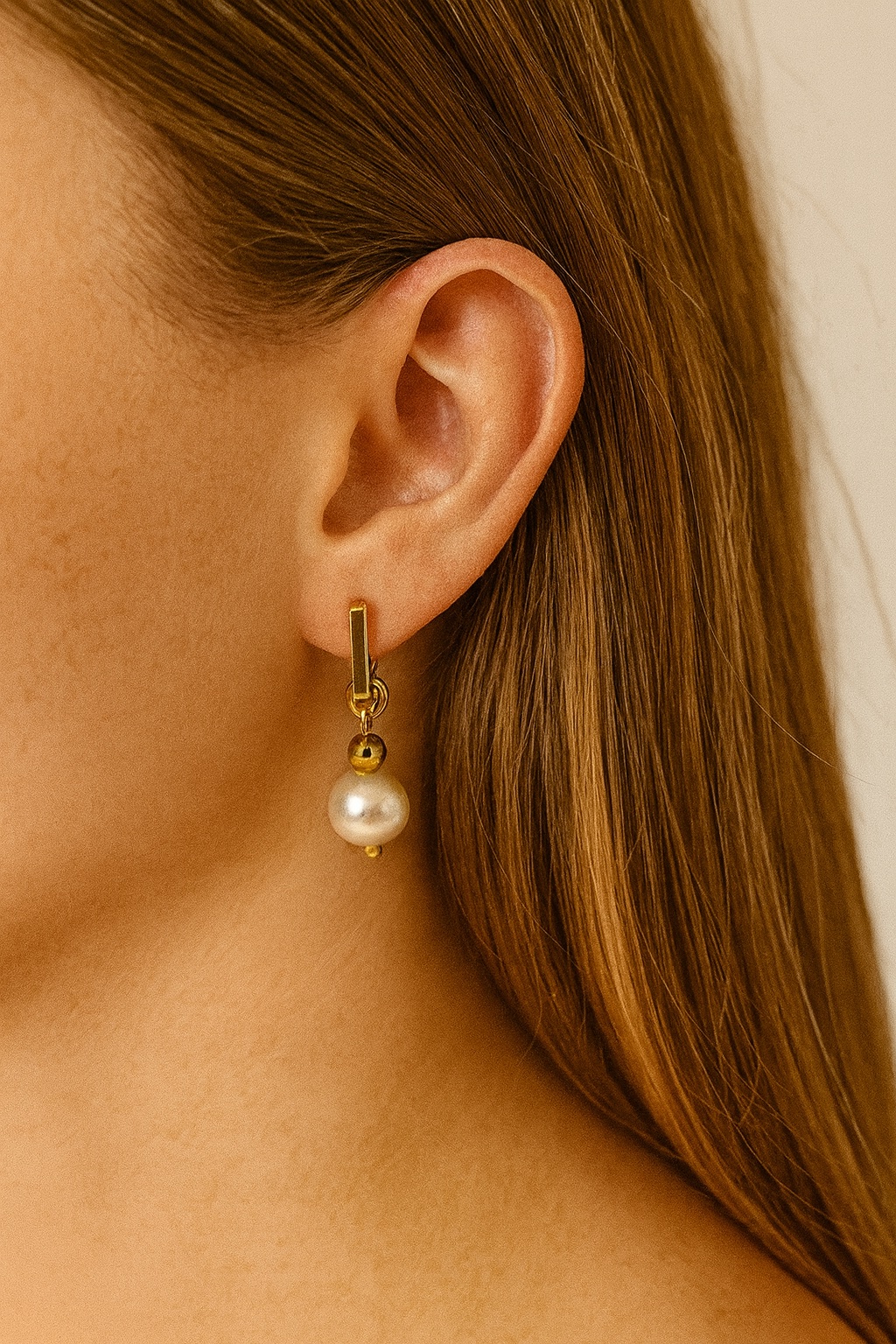 The Parisian Glow earrings bring a touch of pure sophistication. Featuring radiant pearls suspended from sleek golden bars, they add effortless elegance to any outfit. Lightweight yet striking, these earrings shine with soft luminosity — perfect for romantic evenings or elegant daytime looks. A refined creation that whispers beauty in simplicity.