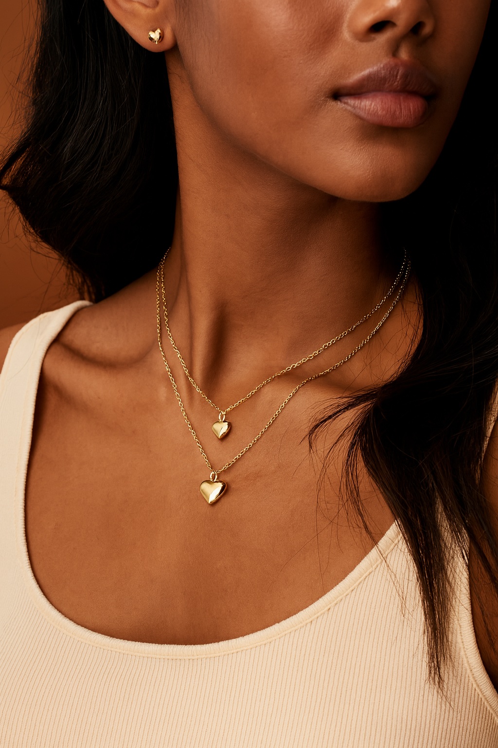 These Golden Heart Plated are the perfect everyday statement. Crafted with a luxurious double plating of rhodium and 24k gold, they bring together shine, durability, and elegance. Their minimalist heart shape makes them ideal for layering or wearing solo. Lightweight, hypoallergenic, and made to last — perfect for any occasion, from casual to elegant looks.