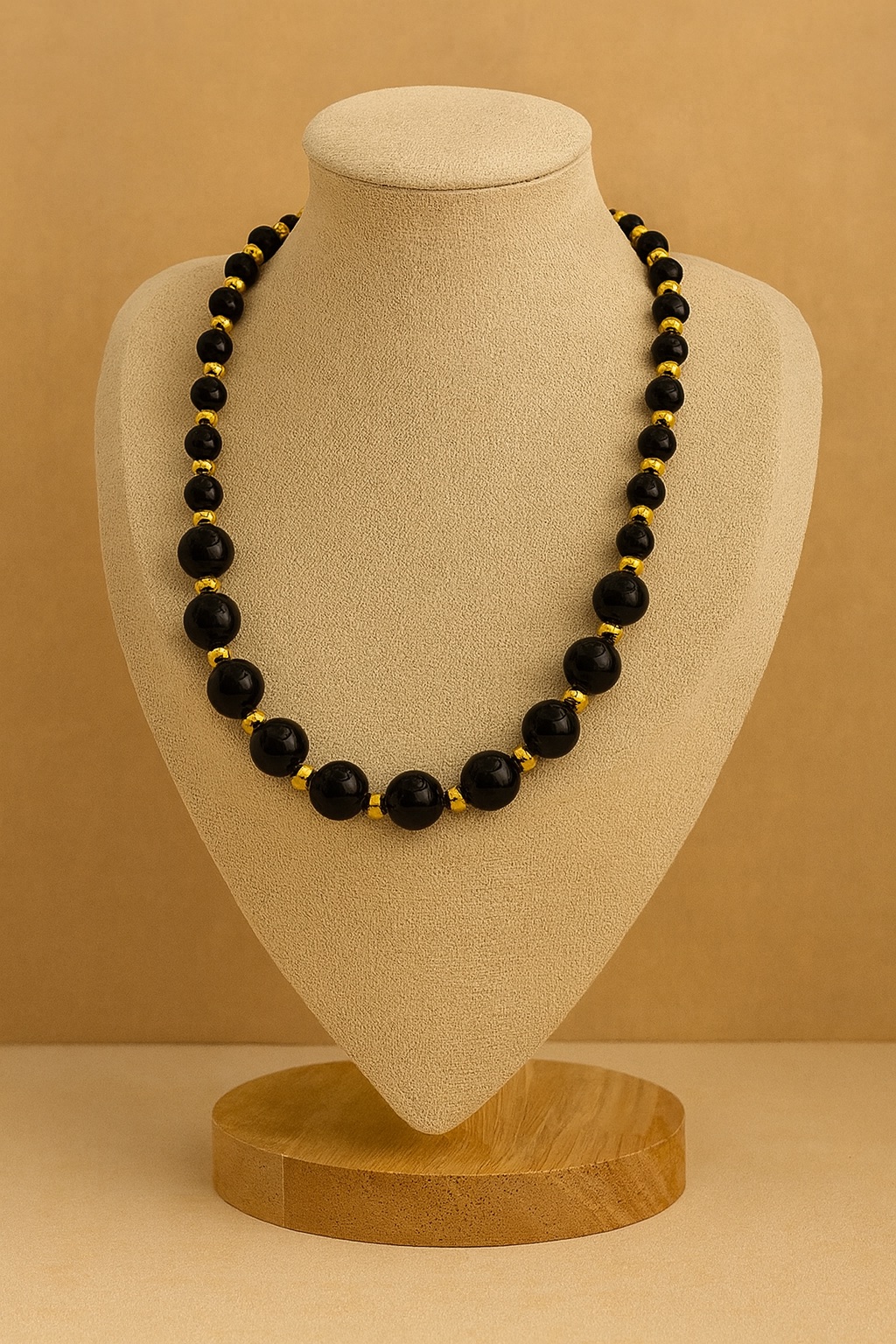 The Noir Élégance necklace embodies timeless elegance. Crafted with polished natural black agate stones, known for their deep hue and subtle shine, this piece adds a touch of luxury and refinement to any look. The 18K gold-plated accents create a beautiful contrast, making it perfect for special occasions, formal events, or to elevate your everyday style. Each stone is carefully selected to ensure exceptional quality and a harmonious finish.
